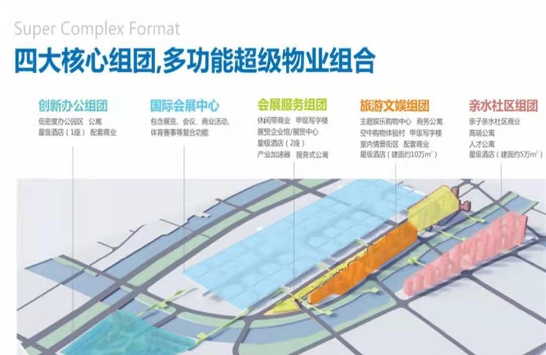 【商業】約32萬㎡國際體驗式商業中心,輻射灣區的城市級商業中心,為全球會展商務客流、周邊消費者提供最便捷的全業態商業體驗;約25萬㎡國際五星級酒店,全球最大的酒店群之一,為深圳乃至灣區提供國際頂級的接待、宴請、住宿商務配套;