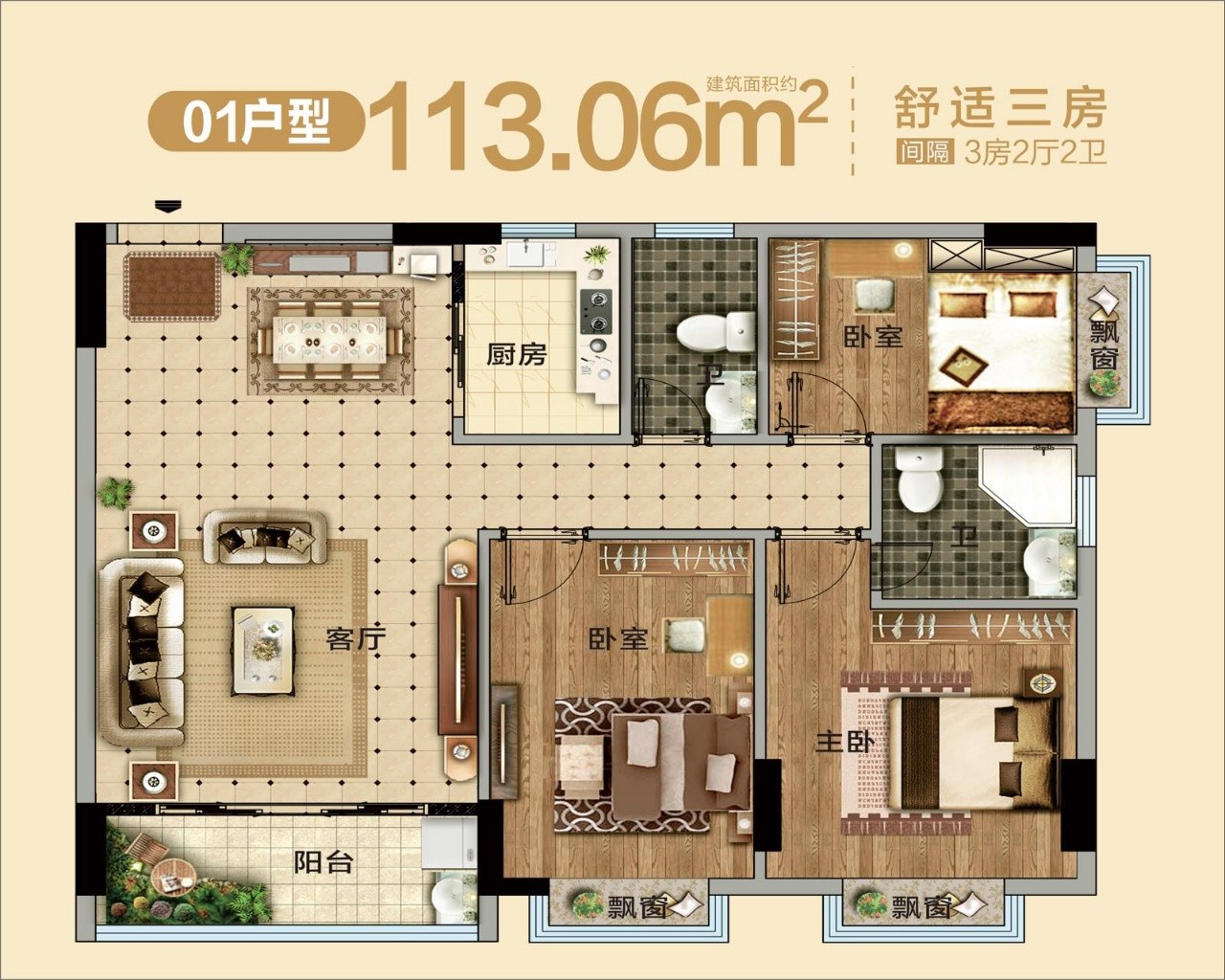 3房2廳:99㎡~ 120 ㎡