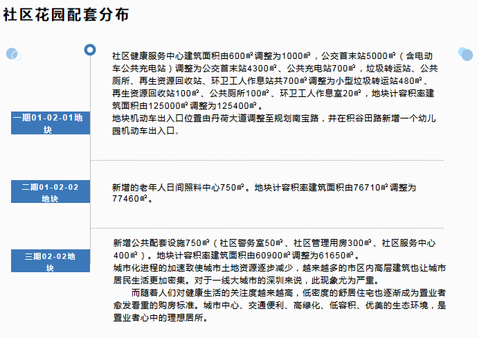 社區(qū)警務室50平方米、社區(qū)管理用房300平方米、社區(qū)服務中心400平方米、社區(qū)老年人日間照料中心750平方米、居住小區(qū)級文化室1500平方米、社區(qū)健康服務中心1000平方米、公交場站4300平方米。公共充電站700平方米、垃圾轉運站480平方米、公共廁所100平方米、再生資源回收站100平方米、環(huán)衛(wèi)工人作息房20平方米、9班幼兒園2400平方米(占地2700平方米)、社區(qū)體育活動場地(占地2400平方米)