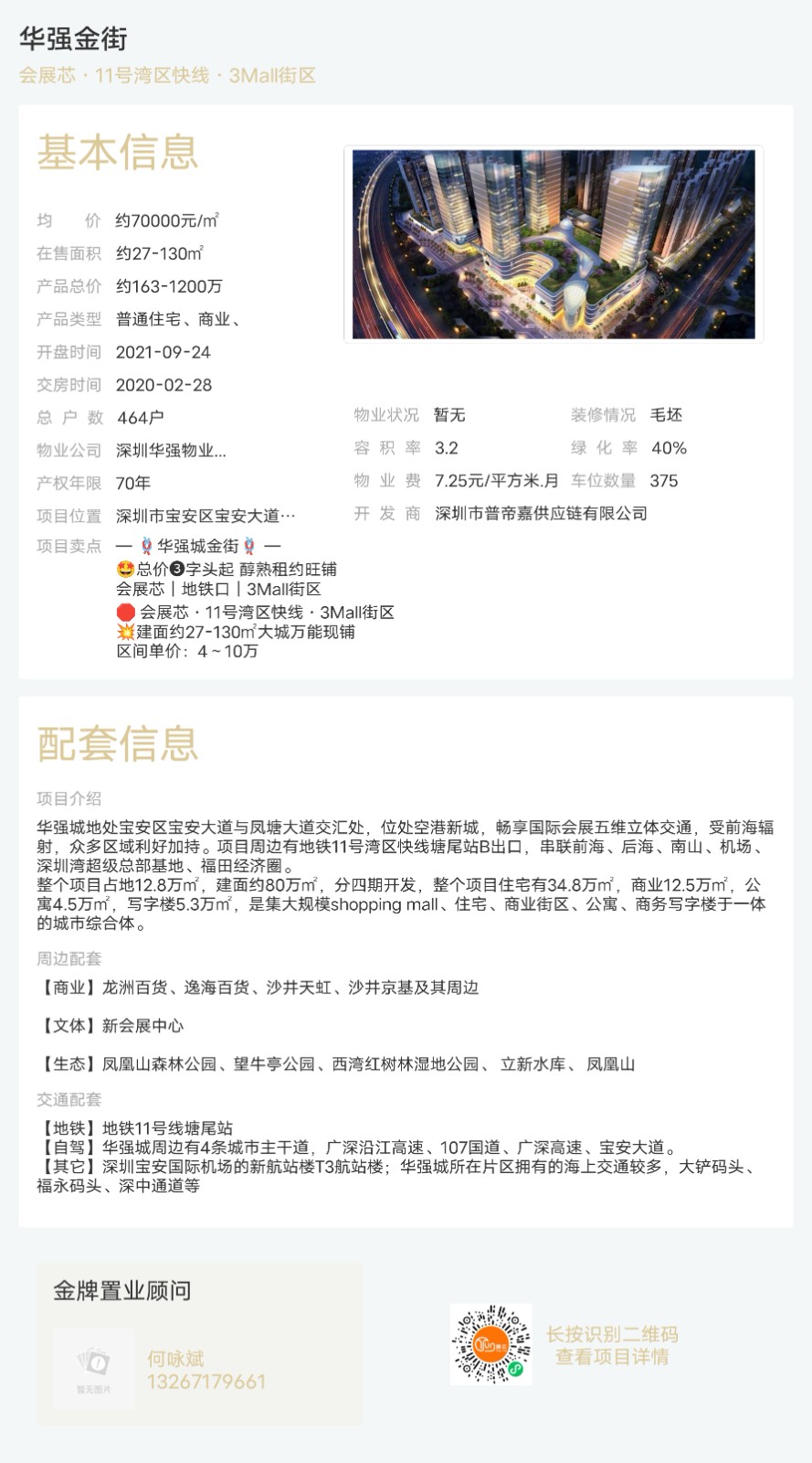 樓盤:華強金街物業(yè)類型:普通住宅、商業(yè)、戶型:0室、1室、2室面積:約27-130平米總價:約163-1200萬聯(lián)系人:何詠斌聯(lián)系電話:13267179661